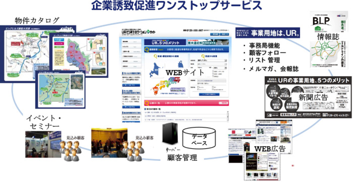 UR都市機構の事業用地販売促進に関わる業務を十数年に亘り行ってきた実績とノウハウを活かしたトータルなサービス提供が可能です。